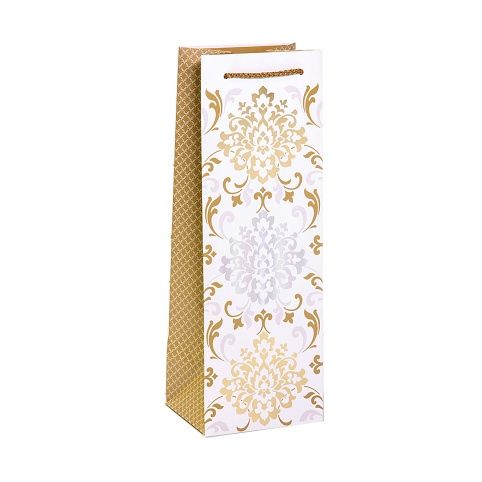 Luxusní papírová dárková taška LUX s originálním designem na víno nebo šampaňské pro rychlé a praktické zabalení. Kvalita zpracování zaručuje dostatečnou pevnost proti protržení dna nebo odtržení oušek..