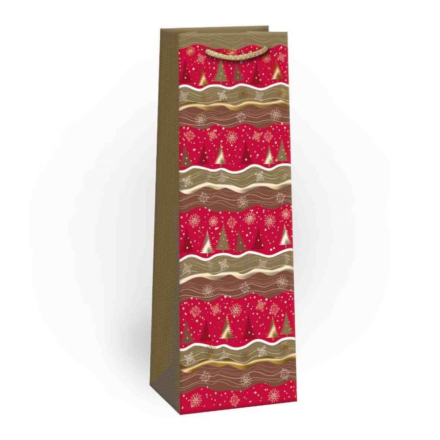 Luxusní vánoční papírová dárková taška LUX s originálním designem na víno nebo šampaňské pro rychlé a praktické zabalení. Kvalita zpracování zaručuje dostatečnou pevnost proti protržení dna nebo odtržení oušek.