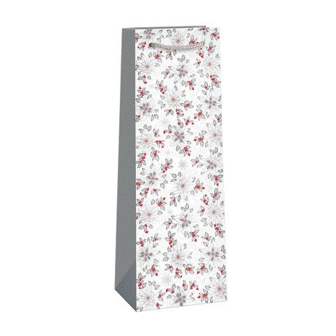Luxusní vánoční papírová dárková taška LUX s originálním designem na víno nebo šampaňské pro rychlé a praktické zabalení. Kvalita zpracování zaručuje dostatečnou pevnost proti protržení dna nebo odtržení oušek.