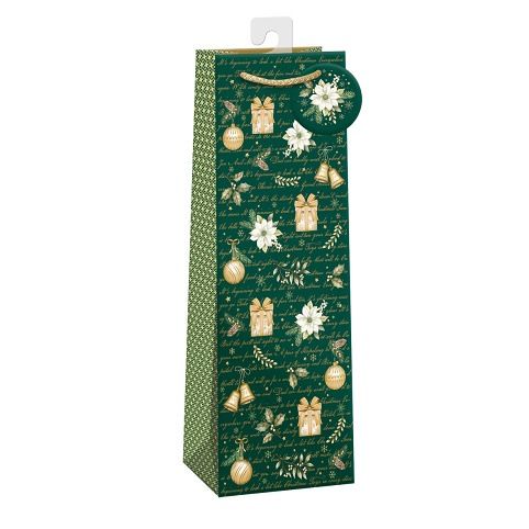 Luxusní vánoční papírová dárková taška LUX s originálním designem na víno nebo šampaňské.* pro rychlé a praktické zabalení* kvalita zpracování zaručuje dostatečnou pevnost proti protržení dna nebo odtržení oušek* na tašce je průsvitné ouško, které slouží k uchchycení tašky na prodejnom stojanu. Po zakoupení je možné ho jednoduše odstřihnout