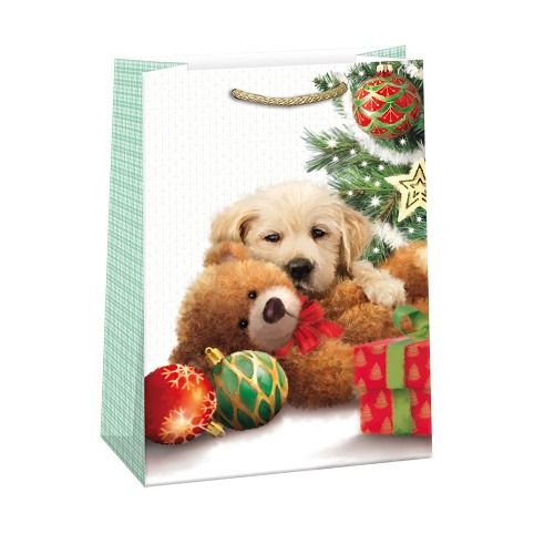 Matná vánoční papírová dárková taška s originálním designem. Vyrobená z kvalitního pevného papíru pro rychlé a praktické zabalení dárků všech velikostí. Kvalita zpracování zaručuje dostatečnou pevnost proti protržení dna nebo odtržení oušek.