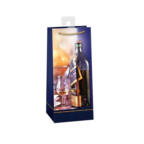 Lesklá papírová dárková taška na koňak s háčkem a originálním designem. Kvalita zpracování zaručuje dostatečnou pevnost proti protržení dna nebo odtržení oušek. Háček slouží k umístění do stojanů v prodejnách. Po zakoupení jej lze jednoduše odstřihnout.