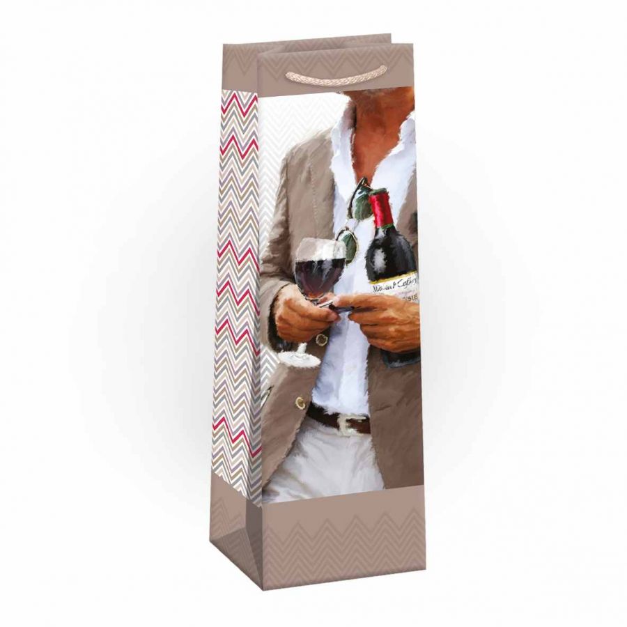 Matná papírová dárková taška s originálním designem na víno nebo šampaňské. Kvalita zpracování zaručuje dostatečnou pevnost proti protržení dna nebo odtržení oušek.