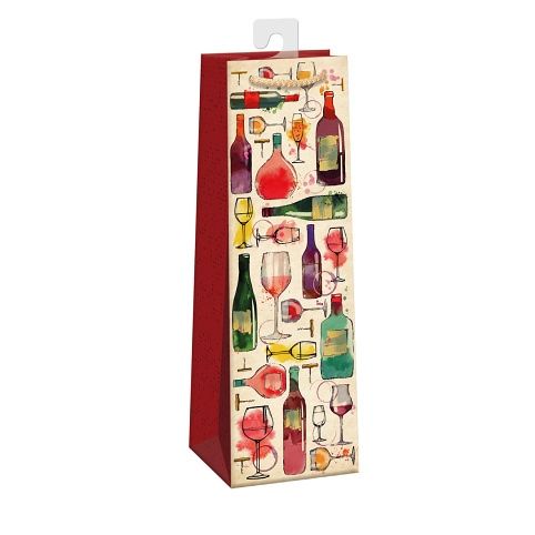 Lesklá papírová dárková taška na víno nebo šampaňské s háčkem a originálním designem. Kvalita zpracování zaručuje dostatečnou pevnost proti protržení dna nebo odtržení oušek. Háček slouží k umístění do stojanů v prodejnách. Po zakoupení jej lze jednoduše odstřihnout.