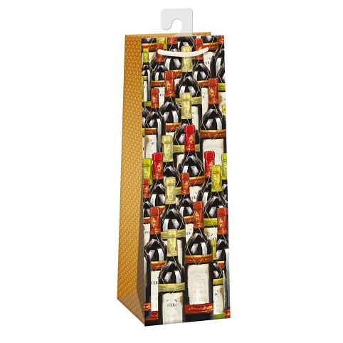 Matná papírová dárková taška na víno nebo šampaňské s háčkem a originálním designem. Kvalita zpracování zaručuje dostatečnou pevnost proti protržení dna nebo odtržení oušek. Háček slouží k umístění do stojanů v prodejnách. Po zakoupení jej lze jednoduše odstřihnout.