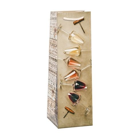 Lesklá papírová dárková taška s originálním designem na víno nebo šampaňské. Kvalita zpracování zaručuje dostatečnou pevnost proti protržení dna nebo odtržení oušek.
