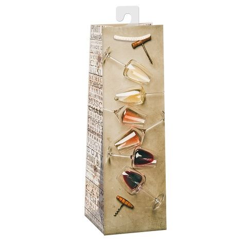 Lesklá papírová dárková taška na víno nebo šampaňské s háčkem a originálním designem. Kvalita zpracování zaručuje dostatečnou pevnost proti protržení dna nebo odtržení oušek. Háček slouží k umístění do stojanů v prodejnách. Po zakoupení jej lze jednoduše odstřihnout.