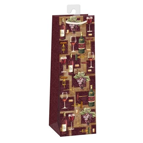 Papírová dárková taška standard na víno nebo šampaňské s háčkem a originálním designem. Kvalita zpracování zaručuje dostatečnou pevnost proti protržení dna nebo odtržení oušek. Háček slouží k umístění do stojanů v prodejnách. Po zakoupení jej lze jednoduše odstřihnout.