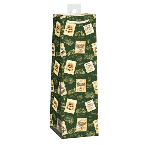 Papírová dárková taška standard na víno nebo šampaňské s háčkem a originálním designem. Kvalita zpracování zaručuje dostatečnou pevnost proti protržení dna nebo odtržení oušek. Háček slouží k umístění do stojanů v prodejnách. Po zakoupení jej lze jednoduše odstřihnout.