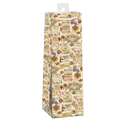 Papírová dárková taška standard na víno nebo šampaňské s háčkem a originálním designem. Kvalita zpracování zaručuje dostatečnou pevnost proti protržení dna nebo odtržení oušek. Háček slouží k umístění do stojanů v prodejnách. Po zakoupení jej lze jednoduše odstřihnout.