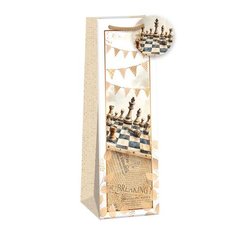 Matná papírová dárková taška s originálním designem na víno nebo šampaňské. * vyrobená z kvalitního pevného papíru pro rychlé a praktické zabalení dárků všech velikostí* kvalita zpracování zaručuje dostatečnou pevnost proti protržení dna nebo odtržení oušek