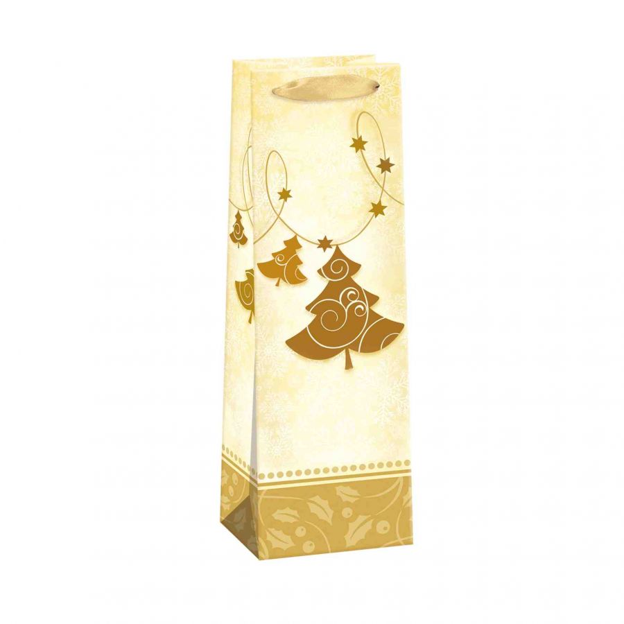 Vánoční papírová dárková taška standard s originálním designem na víno nebo šampaňské. Kvalita zpracování zaručuje dostatečnou pevnost proti protržení dna nebo odtržení oušek.