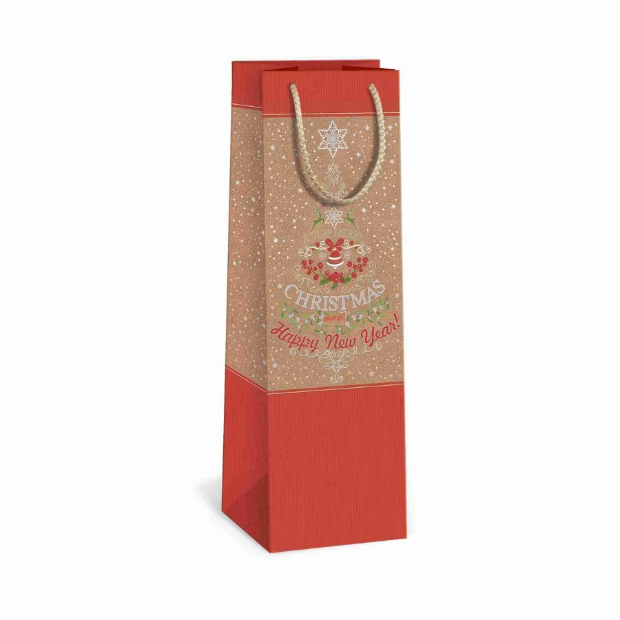 Vánoční papírová dárková taška NATUR s originálním designem na víno nebo šampaňské. Kvalita zpracování zaručuje dostatečnou pevnost proti protržení dna nebo odtržení oušek. Přírodní kraftový papír využíváme u více našich výrobků označených jako ECO FRIENDLY. ARGUS - Máme rádi přírodu!