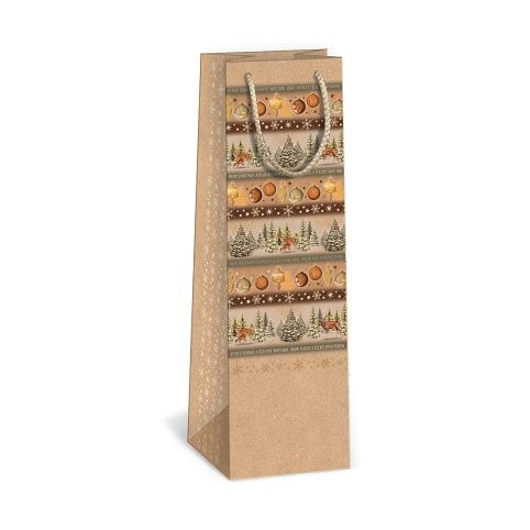 Vánoční papírová dárková taška NATUR s originálním designem na víno nebo šampaňské. Kvalita zpracování zaručuje dostatečnou pevnost proti protržení dna nebo odtržení oušek. Přírodní kraftový papír využíváme u více našich výrobků označených jako ECO FRIENDLY. ARGUS - Máme rádi přírodu!