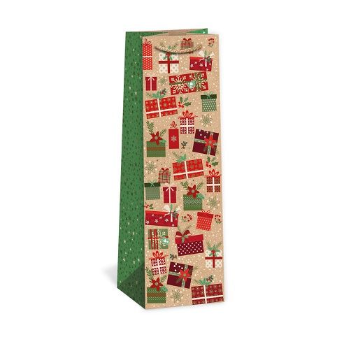 Vánoční papírová dárková taška NATUR s originálním designem na víno nebo šampaňské. Kvalita zpracování zaručuje dostatečnou pevnost proti protržení dna nebo odtržení oušek. Přírodní kraftový papír využíváme u více našich výrobků označených jako ECO FRIENDLY. ARGUS - Máme rádi přírodu!