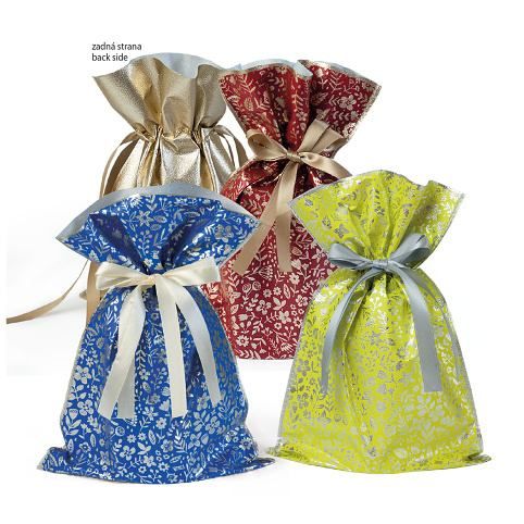 Dárkový sáček - pytlík se saténovou stahovací stužkou pro krásné a jednoduché zabalení dárků. Na přední straně potisk, zadní strana jednobarevná zlatá. Stažením stužky můžete vytvořit krásnou mašličku. Materiál je z netkané textilie s laminátem. Balení obsahuje 48 ks sáčků ve třech barvách. Cena za 1 ks.