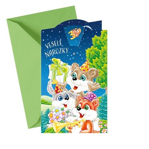 Narozeninové přání s otočníkem a textem uvnitř přání. Otočník umožňuje výběr věku dítěte (od 1 po 7). Design je vylepšen o lepený komponent na přední straně přání. Součástí blahopřání je barevně sladěna obálka. Originální technologie zpracování přáníčka od společnosti ARGUS - "Na detailu záleží!"
