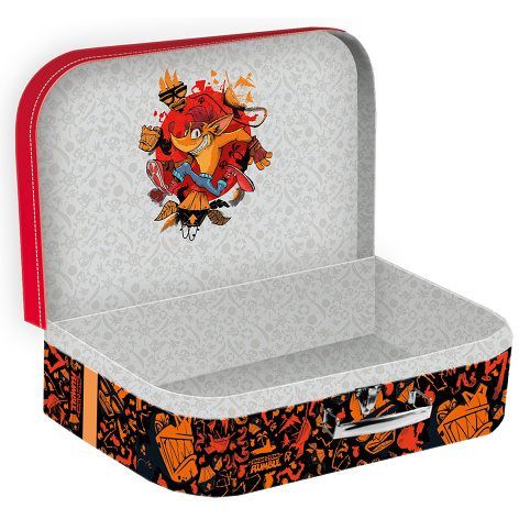 Papírový dětský kufřík velikosti 35cm Crash Team Rumble. Kufřík je vyroben z kvalitního pevného kartonu s vnitřní potiskem a kovovým uzavíráním s rukojetí. Je vhodný na školní potřeby, výtvarné potřeby, do kterého vejde i blok barevných papírů A4. Jeho využití v dětském světě je velké, možnost uložení hraček ale i jiných drobností na cestu k babičce.