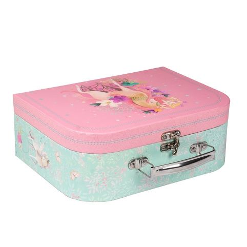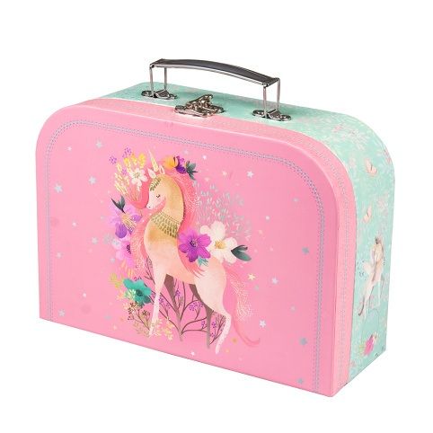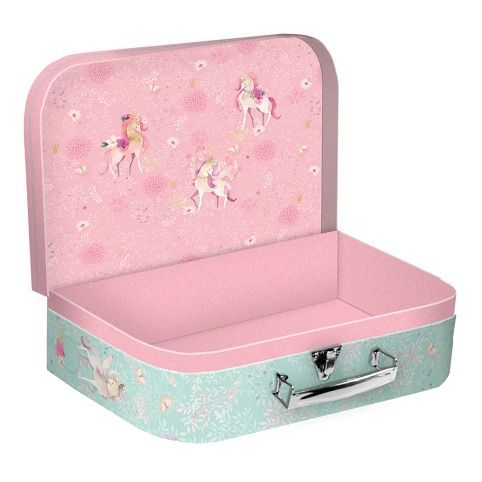 Papírový dětský kufřík velikosti 35cm Magical WORLD. Kufřík je vyroben z kvalitního pevného kartonu s vnitřní potiskem a kovovým uzavíráním s rukojetí. Je vhodný na školní potřeby, výtvarné potřeby, do kterého vejde i blok barevných papírů A4. Jeho využití v dětském světě je velké, možnost uložení hraček ale i jiných drobností na cestu k babičce.