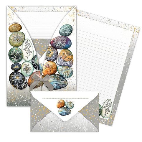 Dopisní papír s potiskem a k tomu barevně potištěné obálky s motivem Balance. * dopisní souprava obsahuje 10 ks papíru s linkami a 10 ks barevně sladěných obálek* celá dopisní souprava je zabalena v dárkovém balení s mašličkou
