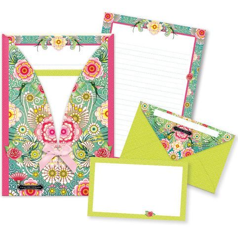 Dopisní papír s potiskem a k tomu barevně potištěné obálky s motivem Catalina Estrada. Celá dopisní souprava je zabalena v dárkovém balení s mašličkou.