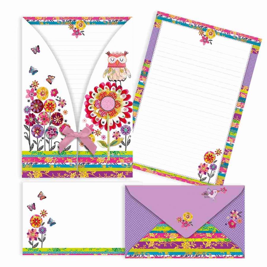 Dopisní papír s potiskem a k tomu barevně potištěné obálky s motivem Happy Owl. Celá dopisní souprava je zabalena v dárkovém balení s mašličkou.