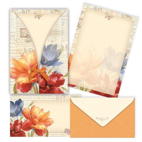 Dopisní papír s potiskem a k tomu barevně potištěné obálky s motivem Jardins de Paris. Dopisní souprava obsahuje 10 ks papíru s linkami a 10 ks barevně sladěných obálek. Celá dopisní souprava je zabalena v dárkovém balení s mašličkou.
