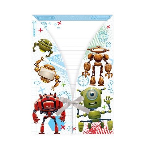 Dopisní papír s potiskem a k tomu barevně potištěné obálky s motivem Robotics. Dopisní souprava obsahuje 10 ks papíru s linkami a 10 ks barevně sladěných obálek. Celá dopisní souprava je zabalena v dárkovém balení s mašličkou.
