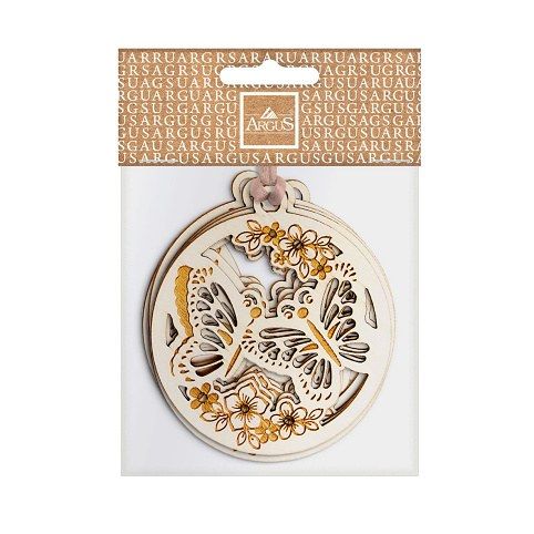Dřevěná vyřezávaná ozdoba zavěšená na saténové šňůrce. Velmi vhodná jako dárek ke svátku, ale také jako malý dárek pro přátele, které máte rádi. Uvedená cena je za 5 ks.