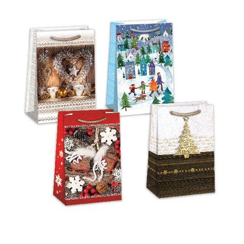 Vánoční papírová dárková taška s originálním designem. Vyrobeno z kvalitního pevného papíru, který zaručuje dostatečnou pevnost proti roztržení spodní části nebo odtržení chlopní. POZOR!!!! TOTO JE MIX DÁRKOVÝCH TAŠEK SESTAVENÝCH Z POSLEDNÍCH NÁHODNĚ VYBRANÝCH KUSŮ. VÝBĚR PROBÍHÁ PŘÍMO EXPEDICÍ. Tento produkt je určen pro B2B zákazníky a cena v eshopu je za 1 ks.