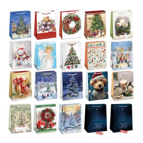 Vánoční papírová dárková taška s originálním designem. Vyrobeno z kvalitního pevného papíru, který zaručuje dostatečnou pevnost proti roztržení spodní části nebo odtržení chlopní. POZOR!!!! TOTO JE MIX DÁRKOVÝCH TAŠEK SESTAVENÝCH Z POSLEDNÍCH NÁHODNĚ VYBRANÝCH KUSŮ. VÝBĚR PROBÍHÁ PŘÍMO EXPEDICÍ. Tento produkt je určen pro B2B zákazníky a cena v eshopu je za 1 ks.