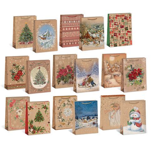 Vánoční papírová dárková taška NATUR s originálním designem. Vyrobeno z kvalitního pevného papíru, který zaručuje dostatečnou pevnost proti roztržení spodní části nebo odtržení chlopní. POZOR!!!! TOTO JE MIX DÁRKOVÝCH TAŠEK SESTAVENÝCH Z POSLEDNÍCH NÁHODNĚ VYBRANÝCH KUSŮ. VÝBĚR PROBÍHÁ PŘÍMO EXPEDICÍ. Tento produkt je určen pro B2B zákazníky a cena v eshopu je za 1 ks.