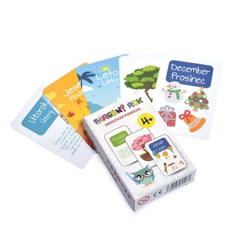 Hrací karty - Barevný rok. V této hře si děti zopakují nejen barvy, ale také roční období či jednotlivé měsíce. Hra slouží jako didaktická pomůcka pro děti od 4 let. Balení obsahuje 51 karet.