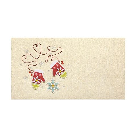 Vánoční obálka s ručně lepenými komponenty, se samolepicím uzavíráním, z pevnějšího papíru – zlatá perleť. Vhodná pro balení různých dárkových poukazů i peněz.