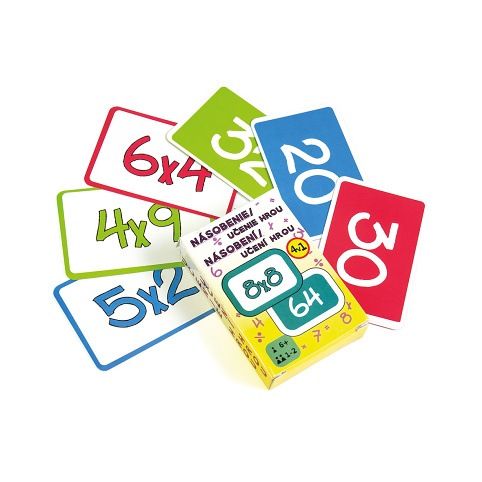 Hrací karty 4v1 - Násobilka. Naučná hra násobení, při které se nejen děti, ale i dospělí skvěle zabaví a také naučí. S těmito kartami můžete hrát až 4 hry, jejichž popis a pravidla jsou v přiloženém lístku v kartách. Hra je vhodná pro děti od 6 let pro Max. 2 hráče. Balíček obsahuje 55 karet.