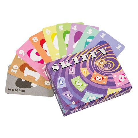 Hrací karty Skippy – oblíbená karetní hra pro celou rodinu v originálním provedení s novým designem. Strategická hra, kterou vyhrává ten hráč, který se jako první zbaví svých karet. 110 karet v balení.