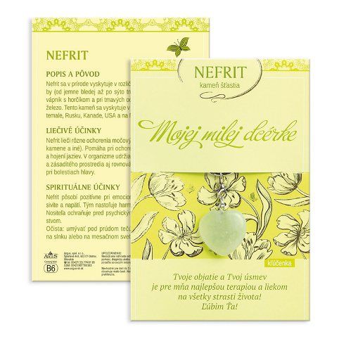 Mojej milej dcérke (slovensky) - přívěšek s léčivým kamenem, jedinečné přání s dárkem. Na zadní straně přání najdete charakteristiku léčivého kamene - popis a původ, léčivé účinky a také jeho spirituální účinky.