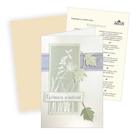 Kondolence, přání úpřimné soustrasti s inspiračními textami uvnitř. Součástí kondolence je obálka. Originální technologie zpracování od společnosti ARGUS - "Na detaile záleží!"