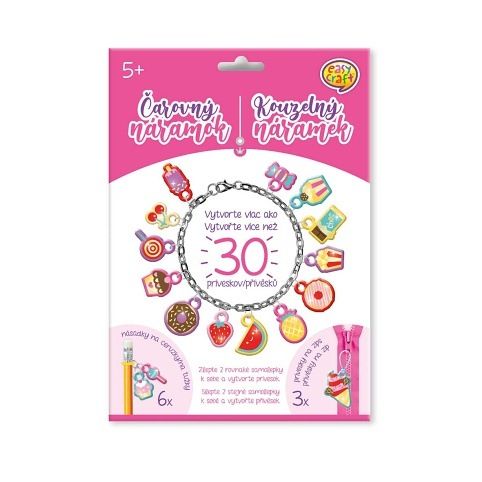 Kouzelný náramek, který si Vaše dítě samostatně vyrobí. Tato kreativní sada podporuje motoriku a budou z ní mít radost. Kreativní sada obsahuje 2 archy se samolepkami, náramek, 6 malých gumiček, 3 větší gumičky a 30 kroužků. Gumičky lze použít i na ozdobení tužky nebo zipu. Vhodné pro děti od 5 let.