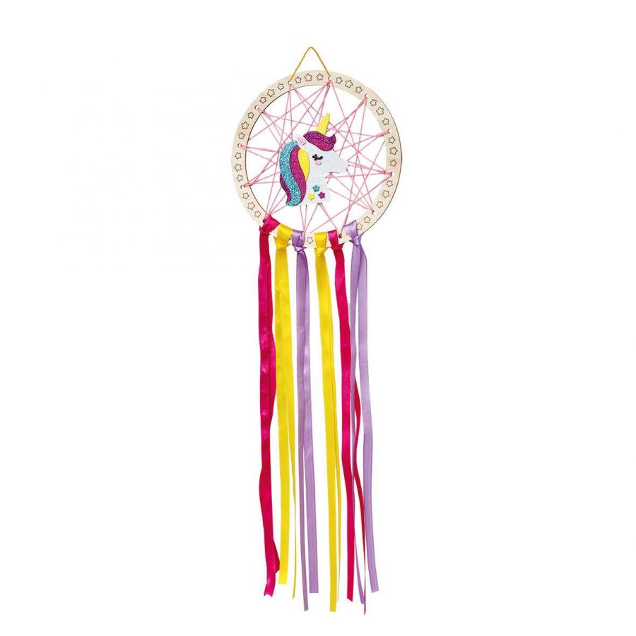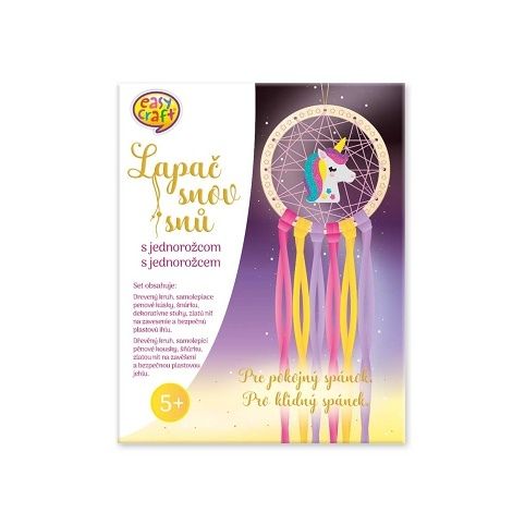 Vyrobte si lapač snů s obrázkem jednorožce, který si Vaše dítě samostatně vyrobí. Tato kreativní sada podporuje motoriku, budou z ní mít radost. Užijte si zábavu s vašimi dětmi. Vhodné pro děti od 5 let.