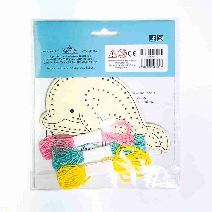 Kreativní tvoření - šijeme si vlastní dřevěnou dekoraci protkanou barevnou nití. Kreativní sada obsahuje dřevěné zvířátko s vyříznutými dírkami s velkou plastovou jehlou s tupým hrotem. Také obsahuje barevné nitě, zvířátko lze zavěsit například v dětském pokoji na zeď, poličku nebo světlo. Hotové zvířátko má velikost 12,5 x 10,5 cm. Vhodné pro děti od 4 let. Podporuje dovednost dítěte.