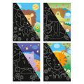 Kreativní tvoření - vyškrab si barevný obrázek.* barevný obrázek si dítě vytvoří vyškrábáním černé vrstvy na obrázku * možnost vyškrábání celého obrázku nebo jen bílých čárí * kreativní sada obsahuje 4 ks barevných podkladních vyškrabávacích podložek, škrábací pero / rydlo / * podporuje zručnost, trpělivost, trénování dětské představivosti ,jemnou motoriku a soustředění u dítěte * vhodné od 3 let
