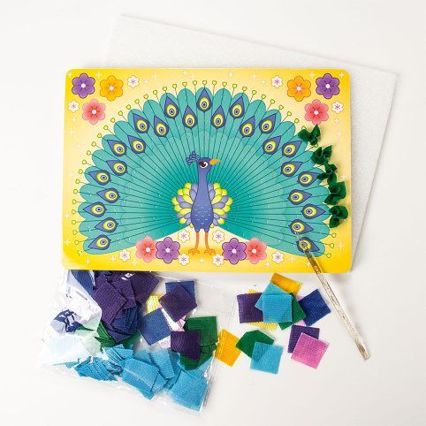 Kreativní tvoření - vytvoř si veselý obrázek - páv. * barevný obrázek si dítě vytvoří vkládáním barevných čtverců do podkladové desky * kreativní sada obsahuje barevnou pěnovou podložku, kousky barevné látky ve tvaru malých čtverců, plastovou jehlu s typovým hrotem * vhodné pro děti od 4 let * podporuje zručnost, trpělivost, jemnu motoriku a fantazii dítěte