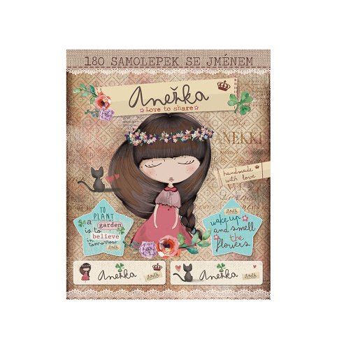 Veselé nálepky/samolepky se jménem Anežka - 15 listů. 180ks samolepek.