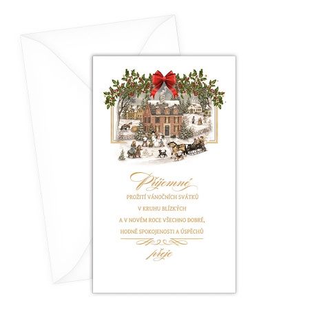 Novoroční přání. Jednostránkové. Součástí je také barevně sladěná obálka. Originální technologie zpracování od společnosti ARGUS - "Na detailu záleží!"