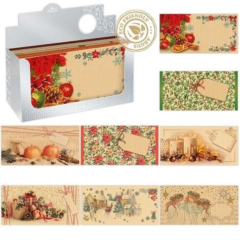 Box NATUR obálek rozměru DL s potiskem vánoční tematiky, samolepicí. Vhodné pro balení různých dárkových poukazů, ale i peněz.