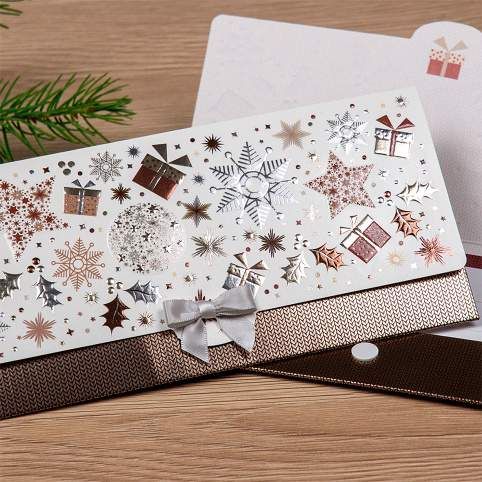 Elegantní vánoční LUX obálka na peníze nebo dárkovou poukázku, se samolepícím uzavíráním. Součástí balení je i kartička na text, na kterou můžete napsat věnování.