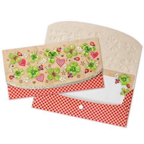 Obálka na vouchery a jiné dárkové poukazy z kategorie luxusních obálek s kartičkou na text. Se samolepícím uzavíráním.