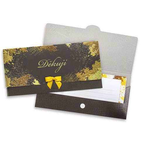 Luxusní obálka s nápisem "Děkuji" na peníze se samolepícím uzavíráním a kartičkou na text.
