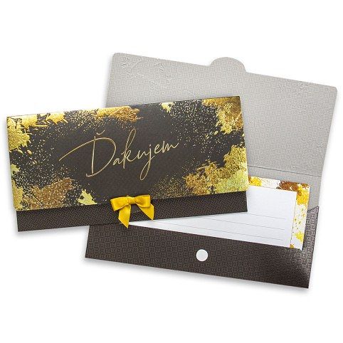 Luxusní obálka s nápisem "Ďakujem" na peníze se samolepícím uzavíráním a kartičkou na text.